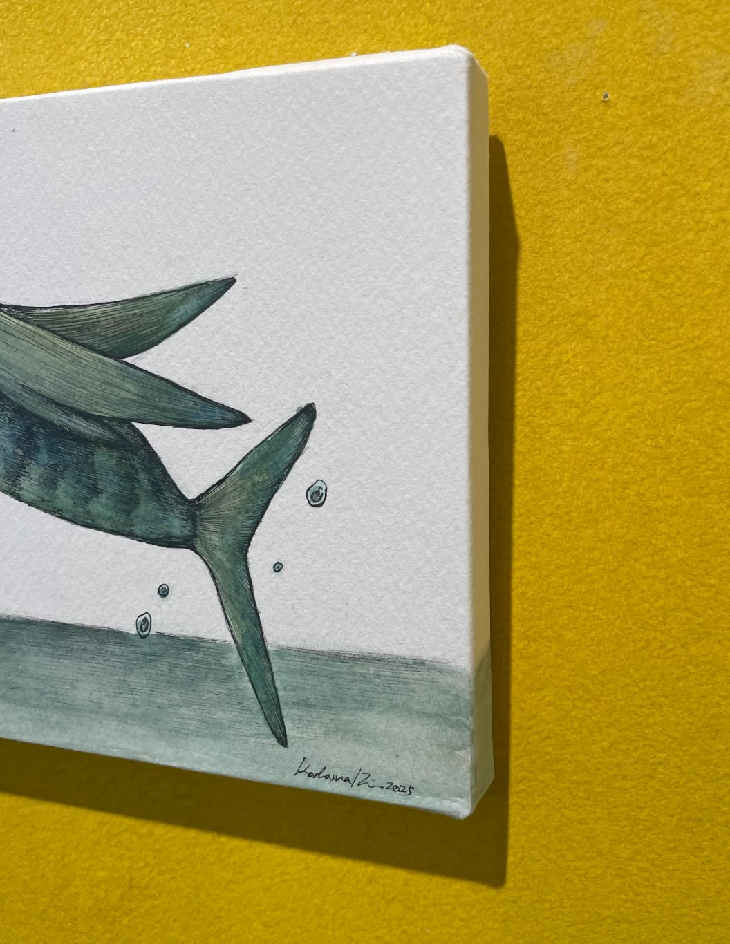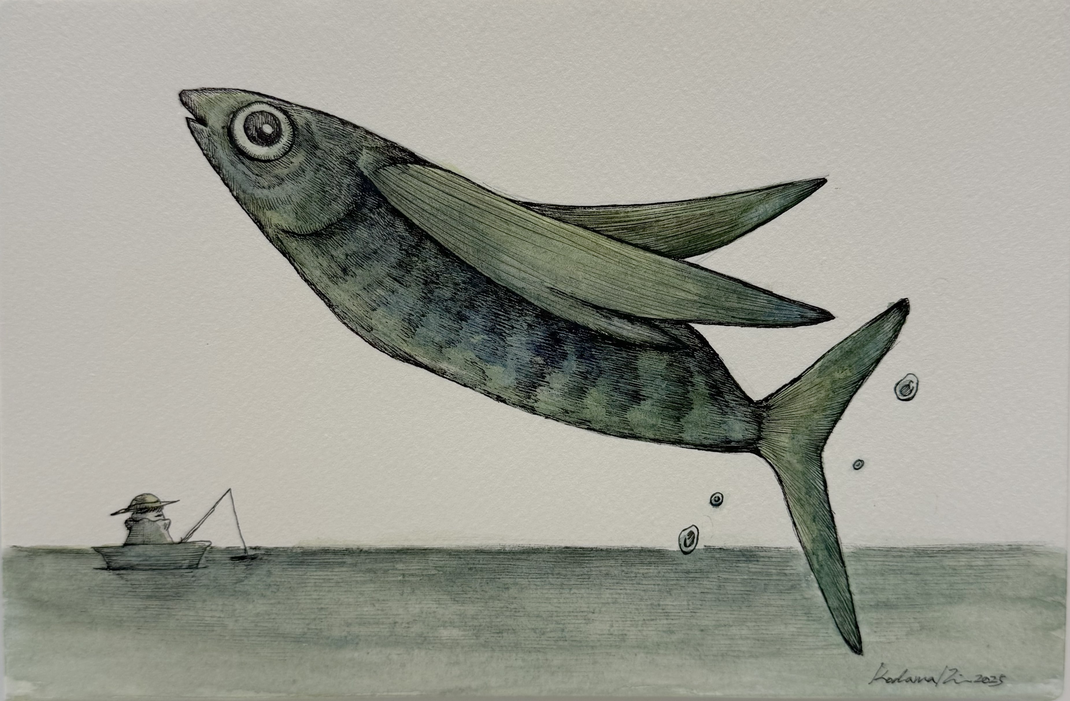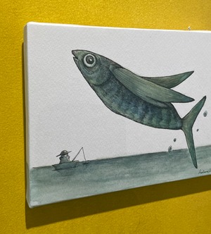 作品タイトル「飛魚」 AJI Fly 作者:コダマリ(kodamari) ペン、水彩 22.7×15.8cm ※額無しになります 海の上を舞う飛魚の作品です。このアートは、自然の神秘を詰め込んだ特別な一枚です。空中を自在に飛び跳ねる姿は、まるで自由を象徴しているかのようです。 飛魚は、爽やかなブルーの色合いと流れるようなラインで、見る者の心を惹きつけます。この作品は、日常の中にある豊かな自然の美しさを感じさせ、特別なひとときを提供します。