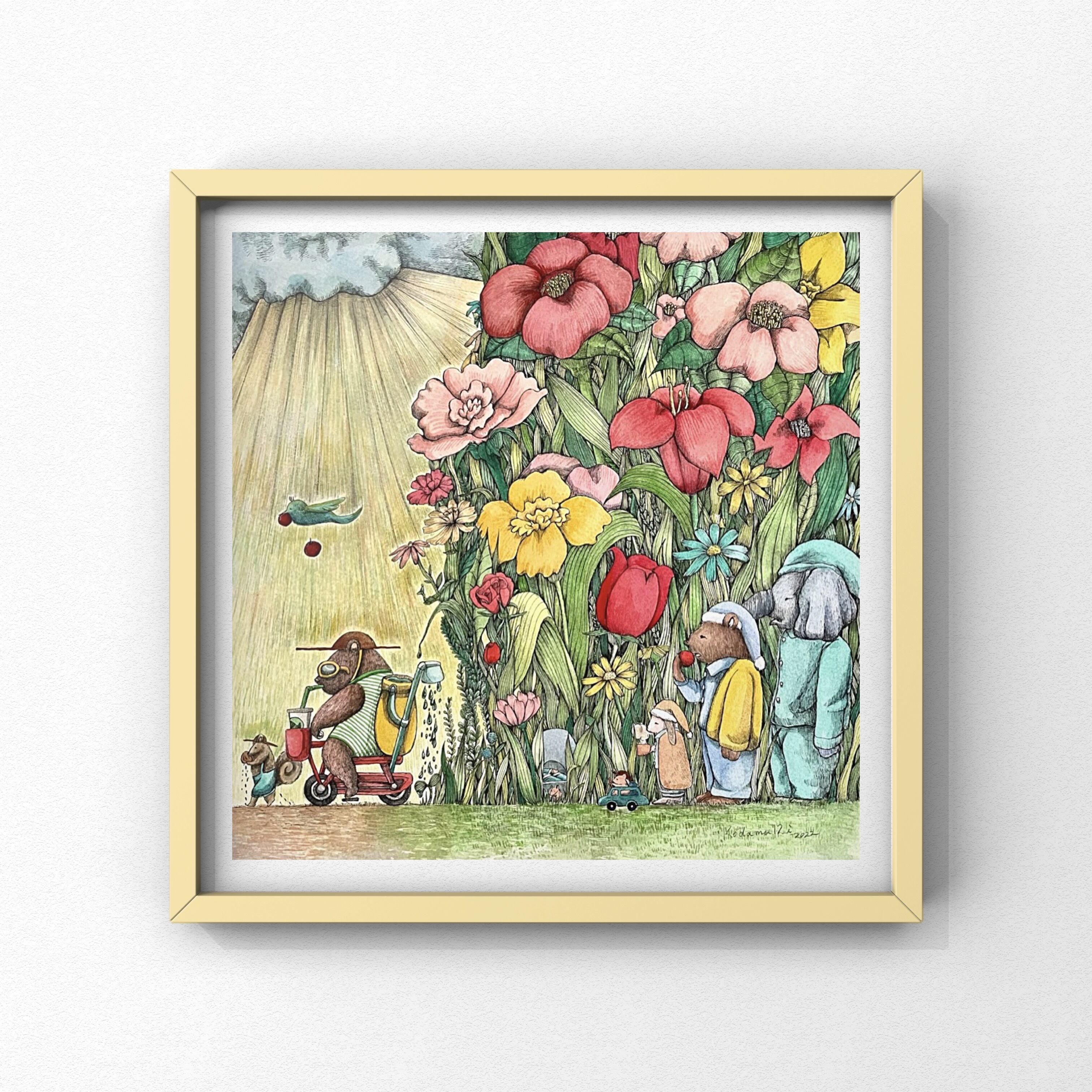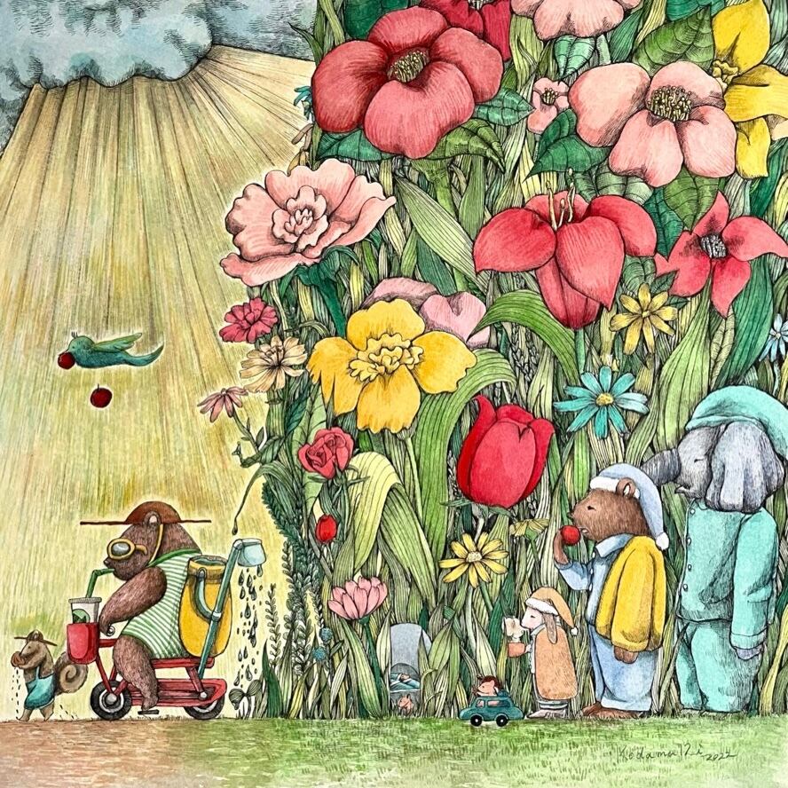 彼のきた道は花盛り S4サイズ 早く春にならないかなと思いながら描きました